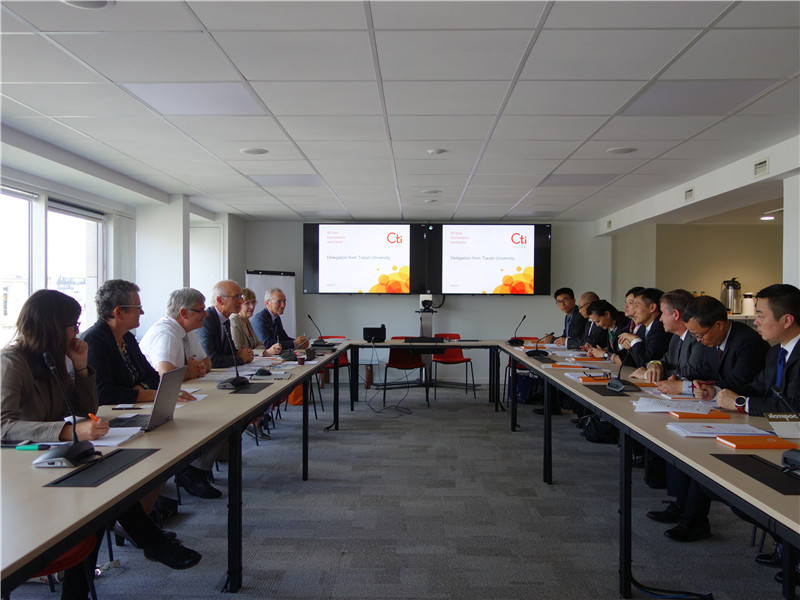 同日,在中国驻法国大使馆一等秘书邹润民的陪同下,天津大学代表团访问法国教育部工程师职衔委员会(CTI)总部。CTI主席Laurent Mahieu、副主席Jean-Marc Theret等委员会成员会见代表团并进行座谈交流。钟登华校长对CTI给予天津大学国际工程师学院最高等级6年认证期表示感谢,并表示学校正在积极谋划TIEI的未来发展,有信心把TIEI办成中国最好、有世界影响力的国际工程师学院。CTI主席Laurent Mahieu介绍了CTI的发展历史及使命,并重点介绍了工程师职衔在法国的基本情况以及欧洲质量管理体系。Laurent Mahieu表示CTI将密切关注TIEI的建设情况,并将全力支持和参与天津大学国际工程师学院发展。