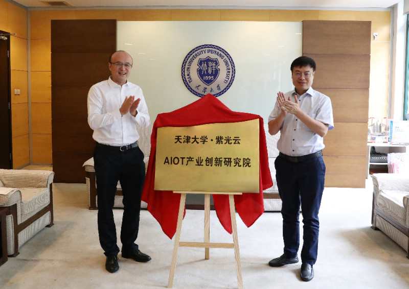 本站讯(摄影 唐蒙) 8月26日,由天津大学与紫光云技术有限公司联合设立的“天津大学-紫光云AIOT产业创新研究院”在卫津路校区揭牌成立。中国工程院院士、天津大学校长金东寒,紫光集团副总裁、紫光云技术有限公司总裁兼CEO吴健出席仪式并揭牌。紫光云公司相关领导和我校科研院、校友会、信网中心、智算学部等单位负责人参加活动。