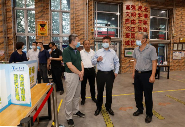 在卫津路校区,金东寒详细查看了各学院学部迎新接待站和工作情况,并对师生工作人员的辛勤付出表示感谢。“欢迎你们成为一名光荣的天大人!”在微电子学院迎新点位,金东寒与来自贵州赤水的2020级本科新生龙宇同学亲切交谈,勉励他努力学习、直面挑战,未来要担起制造“中国芯”的历史重任。刚刚来校报道的自动化学院2020级本科新生段总安和2018级本科生段安迪是一对“前赴后继上天大”的亲姐弟,金东寒勉励他们要努力学习,发扬天大品格,努力成长为具有家国情怀、全球视野、创新精神、实践能力的优秀人才,“祝你们在天津大学生活愉快,学业有成!”金东寒还来到学三食堂,详细了解开学季学校食堂膳食安排和疫情防控情况,要求工作人员“多了解同学们对餐饮服务的意见和需求,提供更优质的服务。”