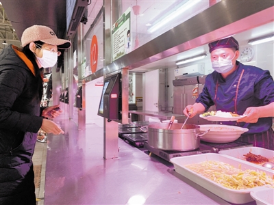 “上个星期,我们引进了测温机器人,能同时对进出人群实现多点监测,防控流程和效率大大提升。我们还增设了热饮吧、面点屋,方便大家随时购买外带,以减少人员聚集。此外,我们建立了晨检记录、消杀记录、冷链人员及食品防疫记录三本台账,做到食品24小时可监督可溯源。”学三食堂店长夏茂告诉记者,寒假期间,学三食堂班子全员上岗,每日凌晨3时开始作业,确保12大风味、17个窗口尽数开放。