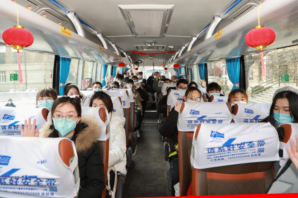 本站讯(记者赵晖 摄影刘延俊 陈晓金)“回家了!晚上我能躺在家里的床上睡觉了!”1月26日,天津大学卫津路、北洋园校区的寒假送站发车点到处洋溢着回家的急切与幸福,学校安排教师带队,护送本硕博、多地区、多民族共160名学生包机返回新疆。护送你平安回家是天大的事!青春作伴“笑“还乡,天大学子挥手与老师和学校做别,相伴回家路的是稳稳的幸福。