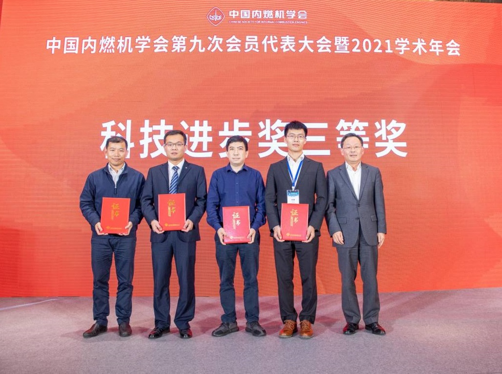 毛明、舒歌群为中国内燃机学会2021年度“自然科学奖”一等奖获奖者颁奖
