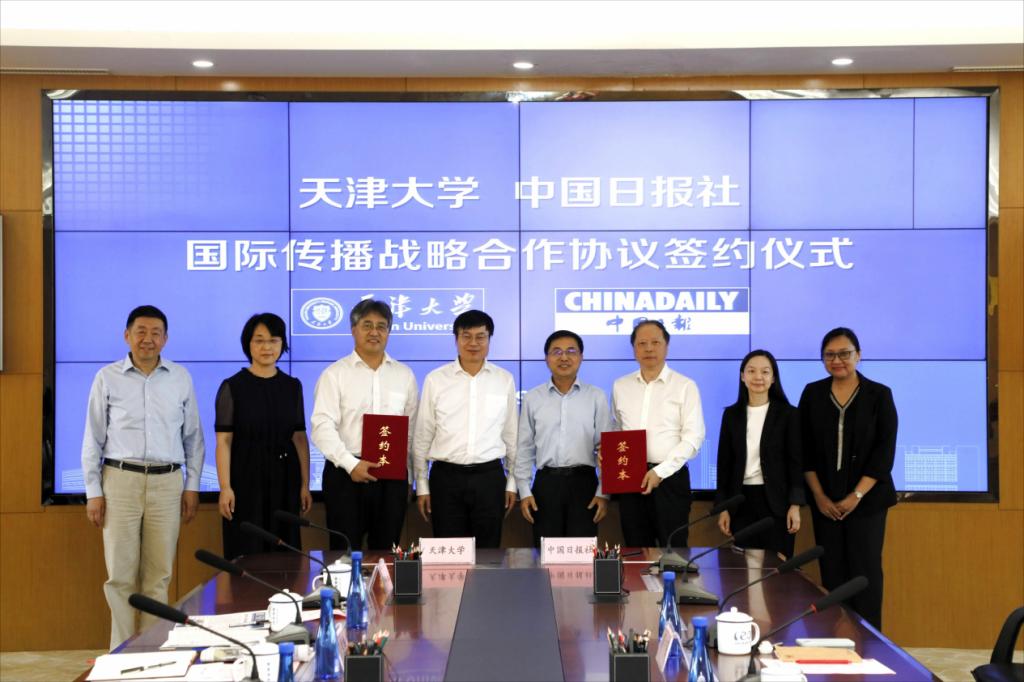 中国日报社副秘书长潘忠明、天津大学党委副书记韩庆华代表双方签署协议。根据协议,双方将积极贯彻落实党中央关于加强国际传播能力建设和教育强国建设的战略部署,重点围绕加强品牌国际传播合作、共同建设融媒体传播平台、共同加强复合型国际化人才培养、加强智库合作、打造学术交流平台、加强针对青年学生群体的各类国际传播项目等方面开展深度合作。