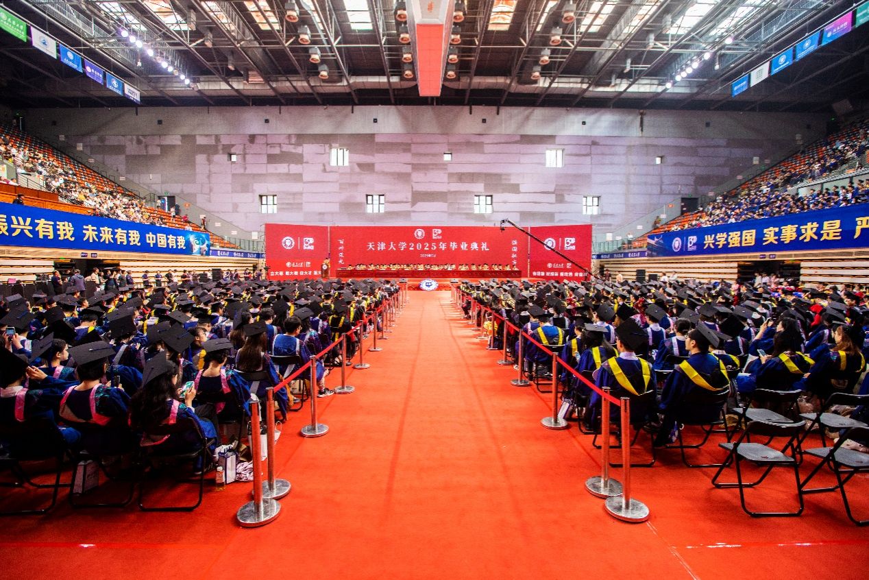 7月4日,天津大学2025年研究生毕业典礼暨学位授予仪式在卫津路校区体育馆举行,离别的不舍、启程的祝福在悠扬的歌声中流淌,见证着2025届4695名研究生的荣耀时刻。