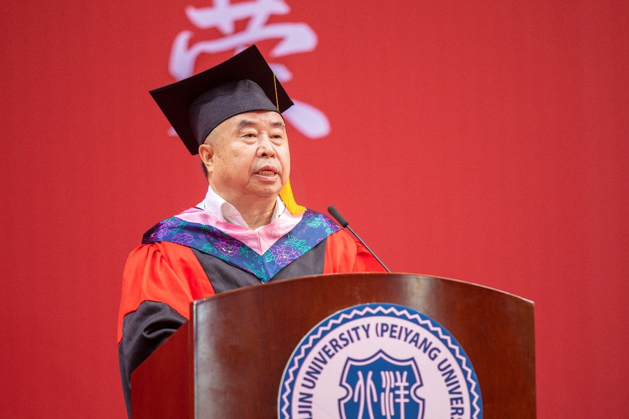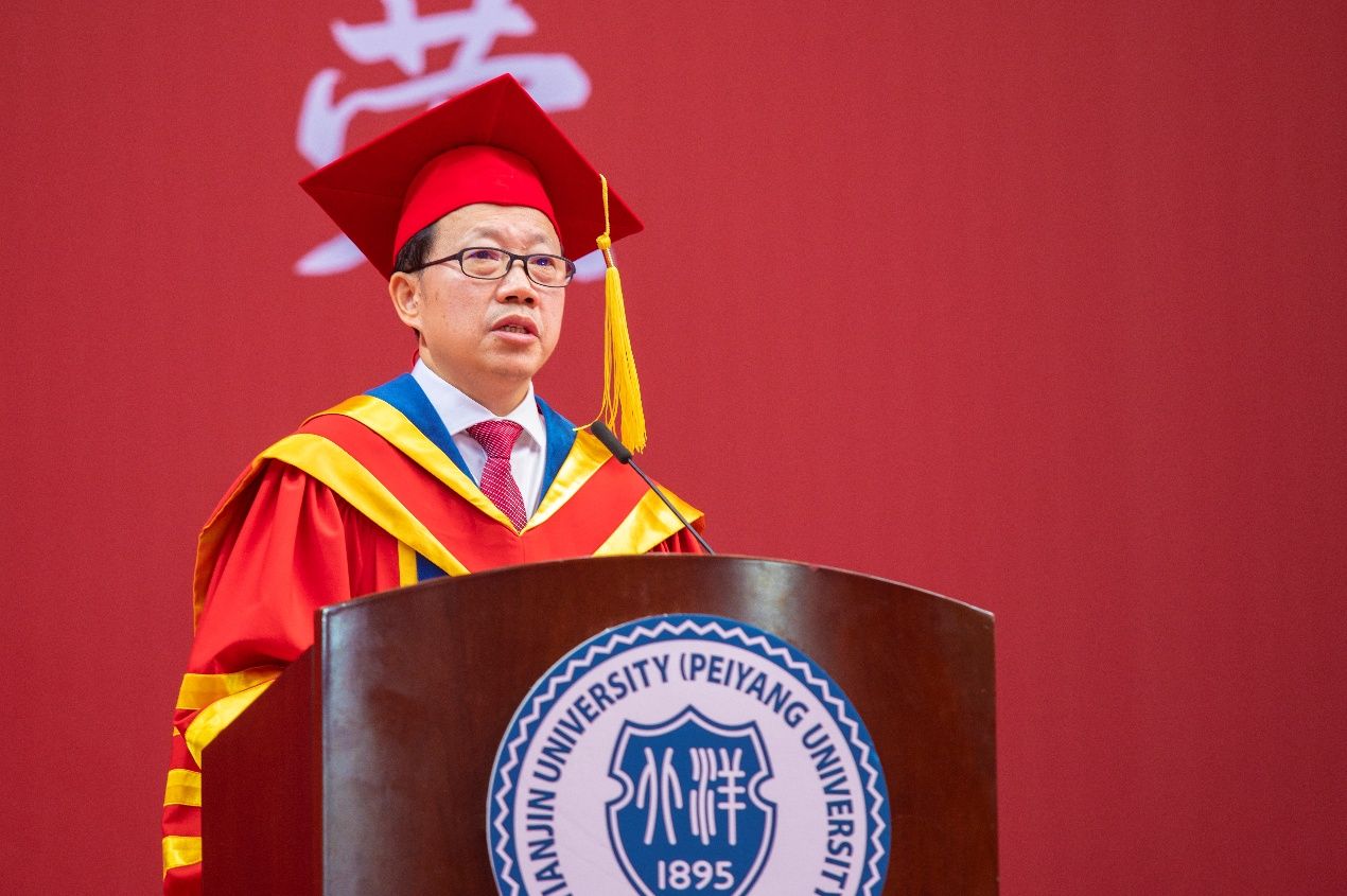 “亲爱的同学们,几年前你们的录取通知书里提到花堤霭霭,北运滔滔,那是地理的北洋园。今天,请大家带上老师们的殷殷嘱托,带上求学期间潜移默化形成的‘实事求是’的天大品格,踏上学习和就业的新征程。”天津大学法学院院长孙佑海作为教师代表为毕业生分享了他关于人生经验的三点思考:学习党、忠于党、爱惜党。“明朝诸君入山海,莫忘母校海棠仍为你而开。”