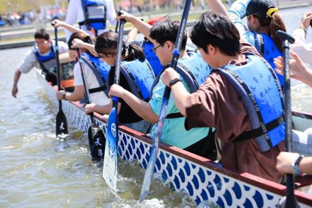 大通学生活动中心广场上活力迸发,健美操锦标赛冠军、青年教师何燃燃带领啦啦操社团用精彩表演点燃全场。青年湖畔碧波荡漾,天津大学龙舟队挥桨逐浪、破浪前行。众多师生游客齐聚壁球馆,体验壁球运动的独特魅力,欢声笑语不断。天麟广场上,中华民族传统文化展示惊艳亮相,民族盛装展演尽显文化魅力。马球击球体验区人气高涨,配备专业球杆与马球,让游客亲自感受基础击球乐趣。