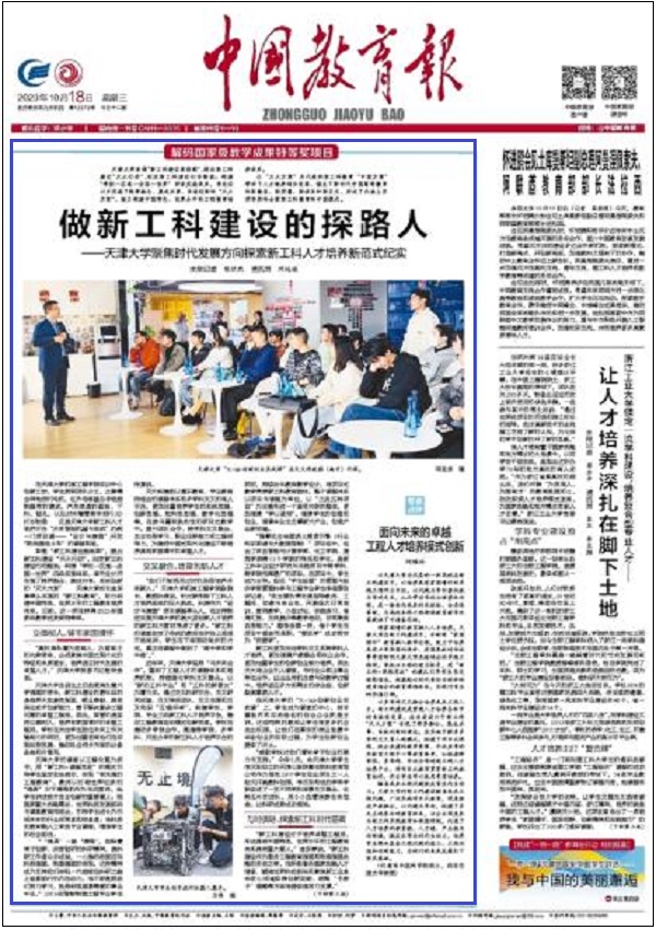天津大学首倡“新工科建设路线图”,提出新工科建设“天大行动”,划定新工科建设行动路线;构建“学校—区域—全国—世界”四级实施体系,率先设计并实施了跨界融合、集成共享、系统创新的“天大方案”,助力构建中国特色、世界水平的工程教育培养体系。
