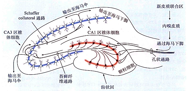 大脑中与记忆相关的系统很多,包括海马、前额、胼胝体等等。记忆储存在大脑的系统和环路中。在细胞层次大部分有关记忆细胞基础的理论认为记忆是在神经网络中的神经元间的突触连接强度变化的结果。其中最有名的就是海扁(Hebbian)定律,突触前神经元向突触后神经元的持续重复的刺激可以导致突触传递效能的增加。简单地说,突触前给的刺激越强,突触后的反应越大。海扁定律就反映了突触是具有可塑性的,广义来说包括发育可塑性、效能可塑性和结构可塑性。海扁定律就反映了突触是具有可塑性的。广义来说包括发育可塑性、效能可塑性和结构可塑性。由于海马在记忆形成中的重要作用,对于突触可塑性的研究大多都是从对海马的研究中得出来的。海马是一个主要负责从短时记忆向长时记忆转换的结构,它在人出生时并没有发育完全,因而我们对幼年期的记忆都是朦朦胧胧、支离破碎的。