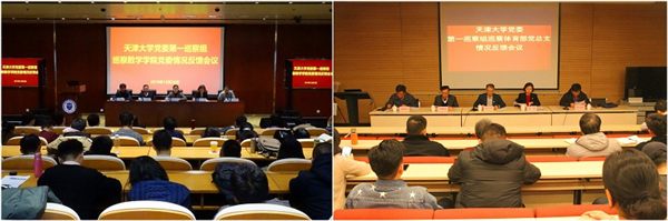 本站讯(通讯员 杨洪涛)按照天津大学党委统一部署,12月26日至30日,学校党委巡察组分别向数学学院党委、体育部党总支、微电子学院党委、海洋科学与技术学院党委、出版社党总支、区域发展研究院党工委反馈了巡察情况。校党委副书记、纪委书记、巡察工作领导小组副组长孙广平,校党委副书记、巡察工作领导小组副组长赵美蓉分别出席反馈会议,传达学校党委对巡察整改工作的要求并讲话。副校长元英进,副校长巩金龙,校长助理、统战部长张力新,作为联系或分管被巡察单位的校领导出席了向被巡察单位党政主要负责人反馈环节并讲话。第一巡察组组长马春有、第二巡察组组长李振宇、第三巡察组组长刘震分别反馈了巡察意见,被巡察单位党组织书记作了表态发言。