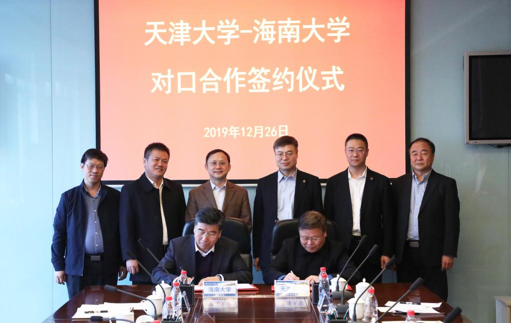 在天津大学校长、中国工程院院士金东寒,海南大学校长、中国科学院院士骆清铭的见证下,天津大学副校长元英进与海南大学副校长范文签署了《天津大学海南大学对口合作协议书》。