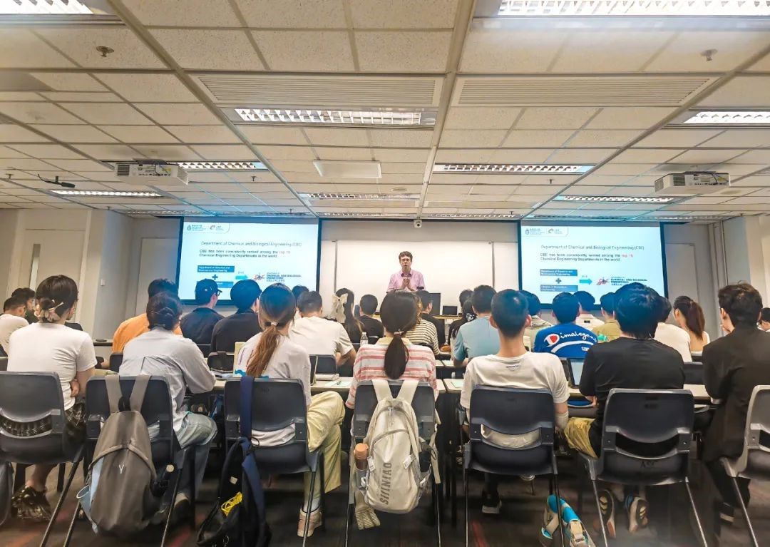 同学们在香港科技大学知名教授的指导下,参与了一系列课堂学习、实验实践、项目研讨、企业参观等活动。首先,Prof. Richard Lakerveld代表香港科技大学化学与生物工程系(CBE)的全体老师与同学,对天津大学暑期研学团队表示了热烈的欢迎。随后,Prof. Lakerveld对院系设置、师资力量、学习内容、毕业去向等进行了详细介绍,让天大团队对CBE有了初步的了解,也为后续同学们与自己所感兴趣方向的课题组深入交流奠定了基础。