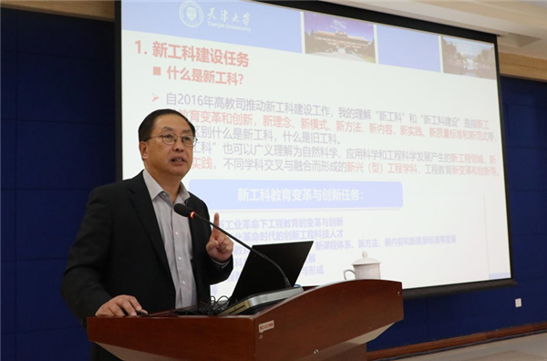 李家俊发表讲话。他指出,当前,学校正在深入开展“不忘初心、牢记使命”主题教育,新工科建设是学校践行“兴学强国”使命、落实立德树人根本任务、全面提高人才培养能力的重要抓手。针对“新工科建设天大方案”的推进实施,他提出三点要求:一是强化危机意识和使命意识。当今世界正处于百年未有之大变局,新一轮科技革命和产业变革的浪潮对高等教育提出了新的要求。新工科是高等教育在新时代的“奋进之笔”,是高等教育立足当前的主动作为、面向未来的主动谋划。当前,天津大学正处于统筹推进“中国特色、世界一流、天大品格”的社会主义大学建设的关键时期,新工科是学校建设一流大学的重要抓手和关键突破口。希望全校上下坚守“兴学强国”的使命,进一步统一思想、抢抓机遇、主动作为。二是提升人才培养能力和质量。建设教育强国是中华民族伟大复兴的基础工程,高等工程教育强国要率先建成。新工科建设是工程教育强国建设的核心内容和关键抓手。新工科教育具有高度的科学性和先进性,在某种程度上是革命性的,是对现有教学体系的颠覆性创新。希望全校上下要牢牢抓住全面提高人才培养能力这个核心点,以新工科建设为抓手,培养面向未来的卓越工程创新人才,为社会主义现代化建设提供强有力的人才支撑和智力支持,支撑“两个一百年”奋斗目标实现。三是找准差距并抓好方案落实。要对标对表习近平总书记关于教育的重要论述精神,着眼于完善立德树人根本任务的落实机制、巩固人才培养的中心地位,找准目前新工科建设中存在的关键问题和根本症结,参照校级引导性平台,加快建设各类院级新工科教育平台。各学院(部)主要负责同志要亲自抓人才培养工作,主动对接、主动服务新工科建设,在对接服务学校整体工作中统筹考虑推进院级平台建设。希望全校上下协同落实好“新工科建设天大方案”,形成具有天大特色的教育教学改革成果,引领新时代人才培养能力和质量提升。