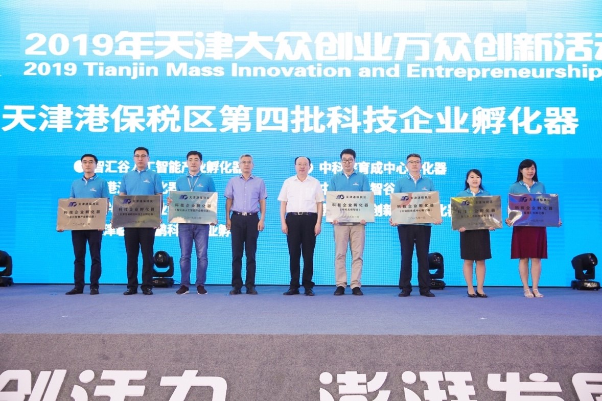 启动仪式上天津分会场与全国主会场连线互动,听取国务院总理李克强重要讲话。随后,滨海新区副区长贾堤和保税区工委书记尤天成共同为滨海工业研究院临港汇创孵化器等七家优秀科技孵化器授牌。这是对滨海工业研究院创新创业各项工作的充分肯定,对加速天津大学技术转移和科技成果转化,助力天津港保税区科技创新及产业发展,促进滨海新区科技型中小企业发展具有重要意义。
