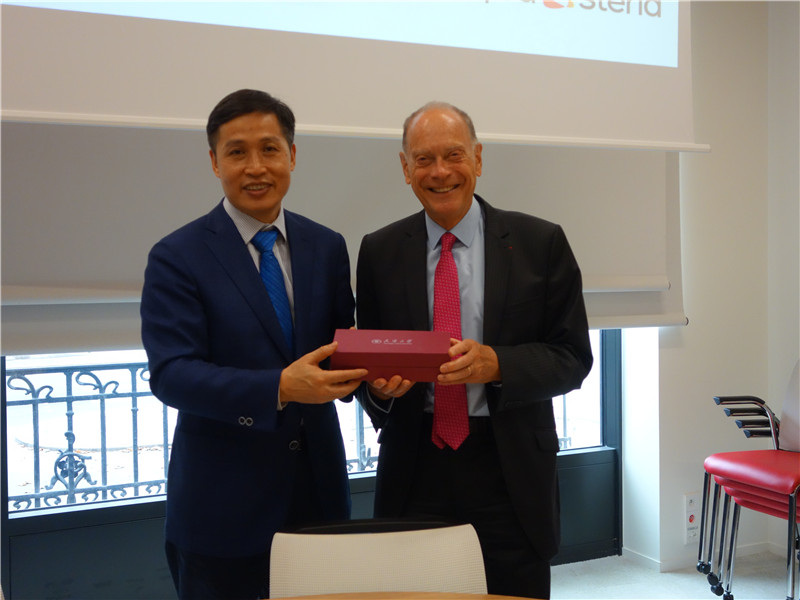 9月5日,校长钟登华率团到欧洲知名的智能公司Sopra访问。在Sopra公司执行总裁Jean Mounet、董事Bouffard的陪同下,参观了公司并进行交流。Jean Mounet指出Sopra公司是欧洲排名前三位的数字化公司,公司在欧洲各国都设立了分公司,有超过4万名员工,主要为企业和政府提供数字化解决方案。Sopra公司的客户涵盖了空中客车以及法国电信、银行、铁路、电力等法国各大企业,在智能化领域具有较强的行业影响力。Sopra公司已经在北京和上海设立了办事处,希望进一步加强与中国企业的合作。钟登华校长介绍了天津市发展概况,特别是滨海新区、中新生态城、天津港建设情况。他指出天津市提出要打造天津智港,举办了世界智能大会,希望Sopra公司进一步加强对天津的了解。钟登华随后介绍了天津大学122年的发展历史以及学校在人才培养、科学研究等方面的情况。他指出,天津大学最近正在积极推进新工科建设,围绕智能专业学科建设进行布局,希望与Sopra公司在计算机、软件方面开展合作。