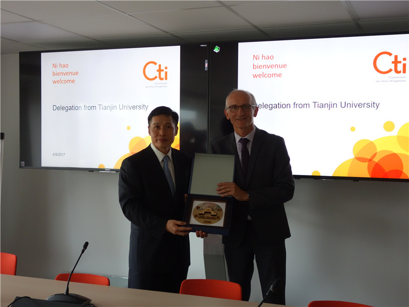 同日,在中国驻法国大使馆一等秘书邹润民的陪同下,天津大学代表团访问法国教育部工程师职衔委员会(CTI)总部。CTI主席Laurent Mahieu、副主席Jean-Marc Theret等委员会成员会见代表团并进行座谈交流。钟登华校长对CTI给予天津大学国际工程师学院最高等级6年认证期表示感谢,并表示学校正在积极谋划TIEI的未来发展,有信心把TIEI办成中国最好、有世界影响力的国际工程师学院。CTI主席Laurent Mahieu介绍了CTI的发展历史及使命,并重点介绍了工程师职衔在法国的基本情况以及欧洲质量管理体系。Laurent Mahieu表示CTI将密切关注TIEI的建设情况,并将全力支持和参与天津大学国际工程师学院发展。
