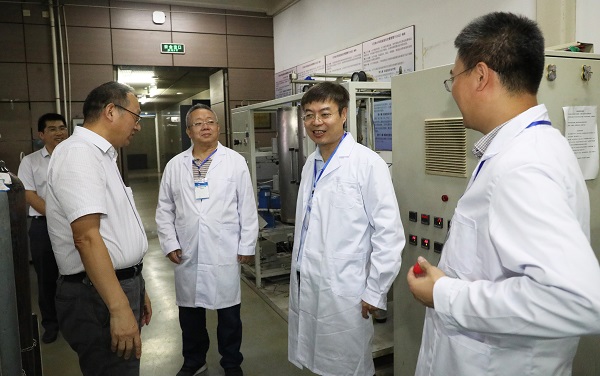 金东寒一行首先来到位于天南联合大厦的化工协同创新中心。他随机走进中心的多个实验室,仔细询问实验化学品存放、实验室安全设施运行情况,详细了解实验室安全操作规程和实施情况,叮嘱实验室师生树立“隐患就是事故”的安全防范意识,严格执行安全操作流程,定期检查,确保实验室安全。