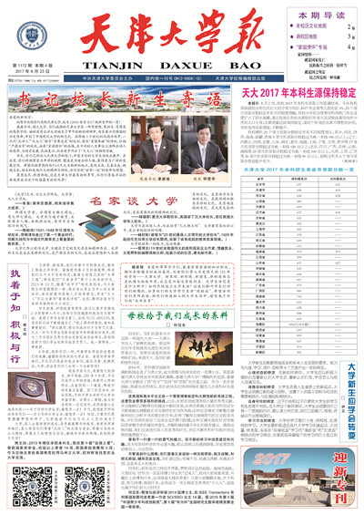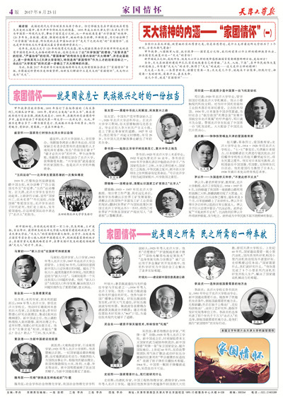 为此,本报2017年迎新专刊由校报编辑部与天大档案馆联合推出了“家国情怀”专版,力图通过珍贵的历史档案资料,向新生们解读什么是天大的“家国情怀”,天大何以成为“天大”。