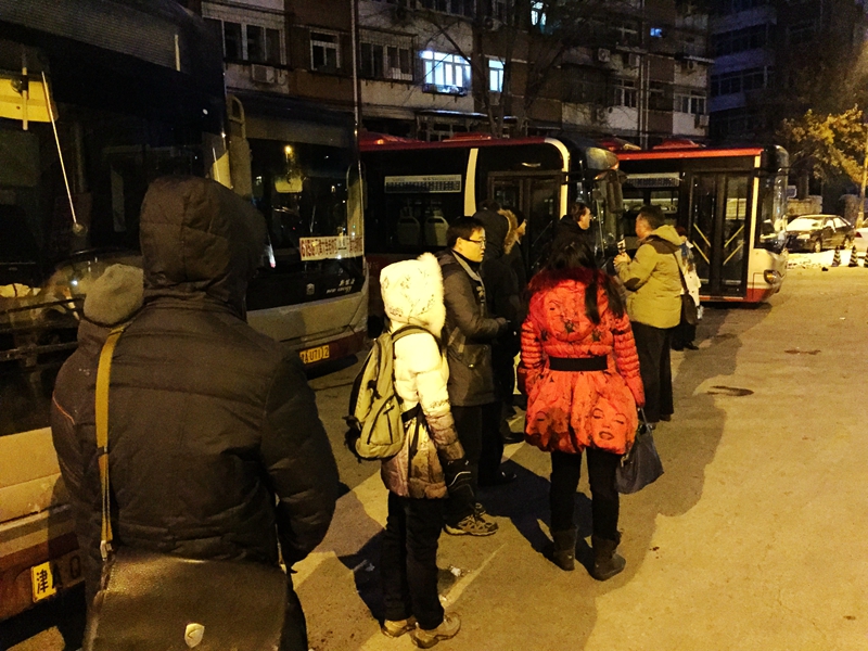 几天来,天津地区出现强降雪,迎来了入冬以来的第一轮寒潮,室外温度下降至半年新低。在这被称为“30年最冷冬天”的清晨,天还没亮,在连通天津大学新老校区的南丰路615路公交车站,天大的老师和同学们早已排成井然有序的长队,等待踏上第一班直通新校区的公交车。