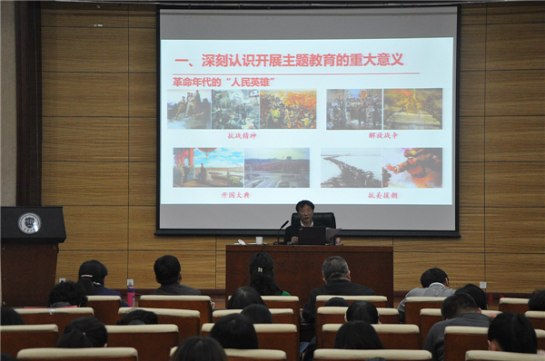 主题教育学习推动会以“牢记初心使命,不断提升师生获得感幸福感”为题,从深刻认识开展主题教育的重大意义、准确把握主题教育的目标要求、主题教育调研情况及问题汇总以及未来工作的思考进行展开,张凤宝指出,不管是革命年代还是建设岁月亦或是改革时期总有一批批的英雄共产党员挺身而出,不怕牺牲,无私奉献,为新中国成立、发展以及改革开放事业做 出伟大的贡献,他们是我们学习的榜样,主题教育的开展就是要我们从他们身上汲取力量,为中国特色社会主义事业发展、为实现中华民族伟大复兴而继续努力。