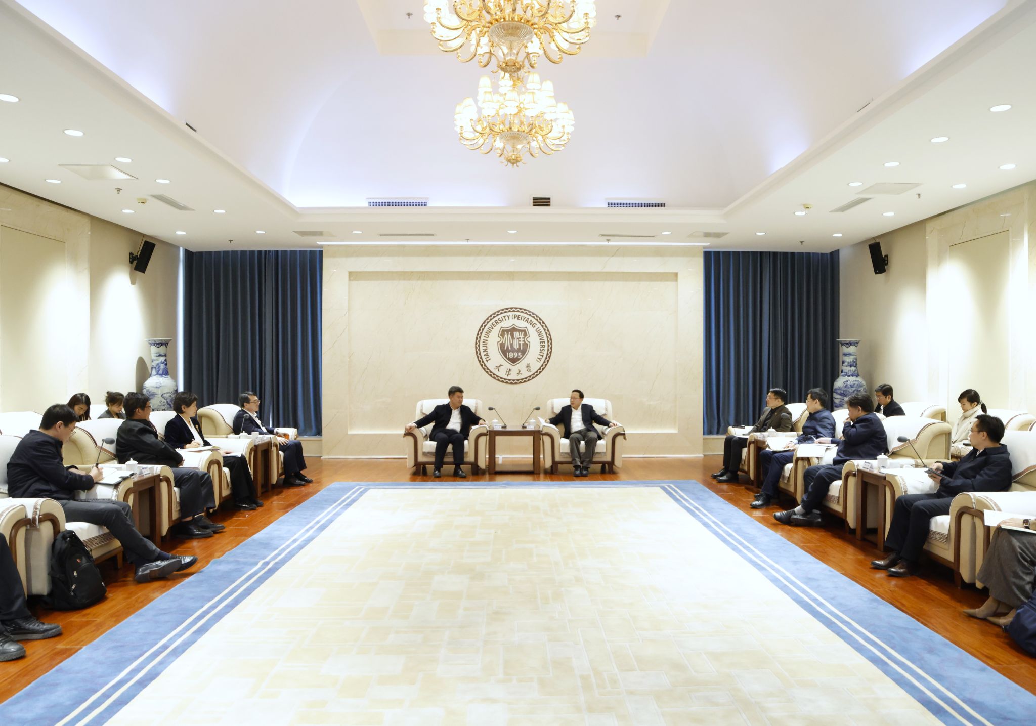 本站讯(记者焦德芳 摄影郭程)3月27日,本溪市委副书记、市长孙付春,沈阳药科大学校长程卯生率代表团来我校考察交流。校长、中国工程院院士柴立元在北洋园校区会见来宾。双方围绕深化银发经济产业合作、推进生物医药科技创新、加强校地协同发展等议题深入交流。本溪副市长、本溪高新区党工委书记方颖,海凭国际医疗器械产业园有限公司董事长宋广征,副校长明东和双方有关部门负责同志参加座谈。