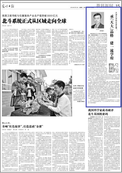 “能到这样一所有着悠久历史和光荣传统的大学担任校长,我深感使命光荣、责任重大。”金东寒动情地说,天津大学是我国第一所现代大学,是我国近代高等教育史上建校最早的高等学府。巍巍学府,国之重器,在中华民族救亡图存之际,振臂一呼,举起“兴学强国”之大旗;在新中国初建之时,重振新中国教育、工业之体系;进入新时代,坚守立德树人、落实教育强国,自觉承担起实现中华民族伟大复兴“中国梦”之担当。“我对天津大学充满敬重和憧憬。曾任天津大学校长的史绍熙是我非常敬仰的前辈,他既是我国内燃机专业的开拓者和奠基人,同时也是一位杰出的教育家,正是他引领着天津大学进入一个全面发展的新时期。我将以史绍熙老校长为楷模,为天津大学的发展进步鞠躬尽瘁!”