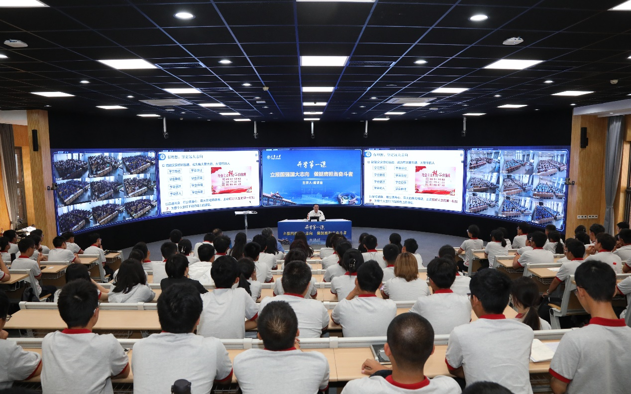 据悉,本次“开学第一课”以天津大学全景教学空间为主课堂,通过智慧教学系统向双校区38间智慧教室辐射,各学院学生工作副书记、辅导员、班主任与本科新生共同在智慧教室分课堂收看学习,以远程联动同步授课的模式,首次实现双校区全体本科新生共上一堂课。“开学第一课”结束后,各分课堂通过研讨交流等形式,就如何立报国强国大志向、做挺膺担当奋斗者开展热烈讨论。