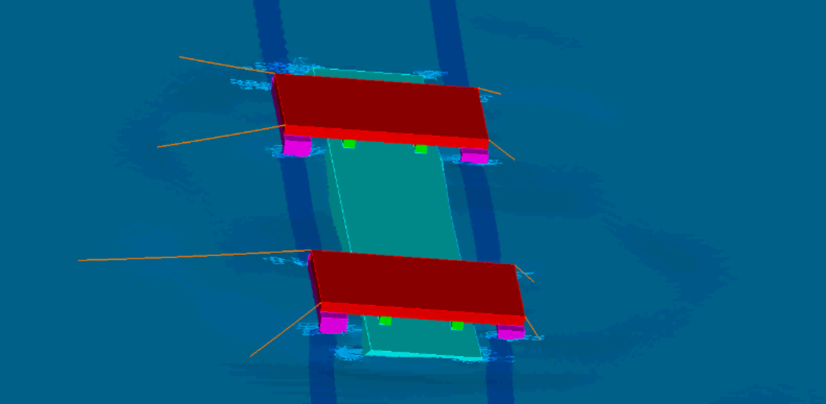 港珠澳大桥的桥墩采用陆上分节预制,水上拼接安装的施工工艺。单个预制件最大重量达3510吨,高度超过22m。利用半潜驳船将预制好的桥墩运输至施工海域。桥墩浮拖跨距长,海况复杂恶劣,且桥墩属于高耸结构,驳运系统整体的重心较高,拖运过程中在风浪作用下半潜驳船和桥墩联合体的运动响应明显,支撑桥墩的台车车轮承受巨大荷载。为确保浮拖过程中半潜船及桥墩的安全,天津大学建筑工程学院别社安教授团队对整个驳运系统进行了水动力性能计算、桥墩的拖航稳定性分析,在此基础上提出了桥墩在运输驳船上的加固稳定方案,保证了桥墩的安全运输。