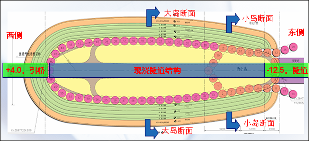 港珠澳大桥建设的主体工程包括:跨海桥梁、海底隧道和桥隧连接人工岛,其中桥隧连接人工岛是港珠澳大桥建设的关键工程之一。桥隧连接人工岛要完成在岛内干地现浇海底隧道上岛段的工作,施工过程中岛壁要承受20.26m静水压力和5.10m波高的动力作用。岛壁在静水压力和波浪作用下的稳定性和岛内渗流分析,是桥隧连接人工岛建设要解决的关键问题。中交第四航务工程勘察设计院有限公司承担了港珠澳大桥建设工程桥隧连接人工岛的设计工作,岛壁采用沉入式钢圆筒结构。沉入式大圆筒结构是一种新型海岸工程结构,我国尚未制定相应的设计施工规范。受中交第四航务工程勘察设计院有限公司委托,王元战教授课题组承担了港珠澳大桥建设工程桥隧连接人工岛沉入式钢圆筒结构的稳定性及渗流分析工作,解决了波浪作用下软土强度弱化、沉入式大圆筒结构破坏过程模拟等科学技术问题,对各种荷载工况下桥隧连接人工岛沉入式钢圆筒结构稳定性和渗流进行了计算分析,为完善人工岛设计提供了技术支撑。