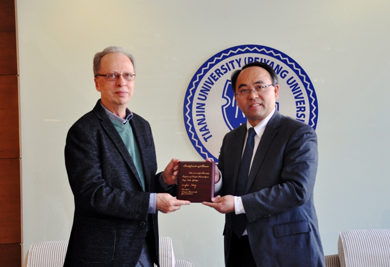 名誉教授授予仪式在卫津路校区会议室贵宾室举行。天津大学副校长胡文平、自动化学院院长王成山、高忠科教授及国际合作与交流处副处长张春彦出席了授予仪式。