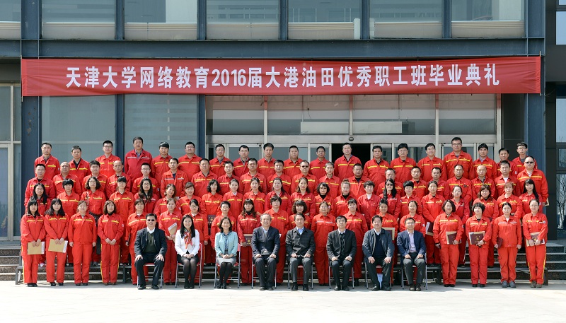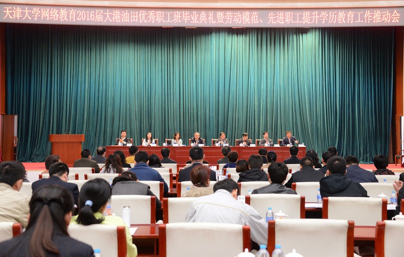 本站讯(通讯员 张勇)3月30日,天津大学网络教育2016届大港油田优秀职工班毕业典礼暨全市劳动模范、先进职工学历提升教育工作推动会在大港油田隆重举行。天津市总工会党组成员、副主席葛英秋,天津大学党委副书记、纪委书记、工会主席汪曣,大港油田公司党委委员、纪委书记张晓东,天津市工会管理干部学院院长李恒强,天津大学工会常务副主席马桂秋,网络教育学院院长李振宇,大港油田工会常务副主席陈兰英等出席会议。全市部分区县局、公司、集团工会主席和87名优秀职工班毕业生参加了典礼。会议由天津市总工会党组成员、经保部部长申静涛主持。