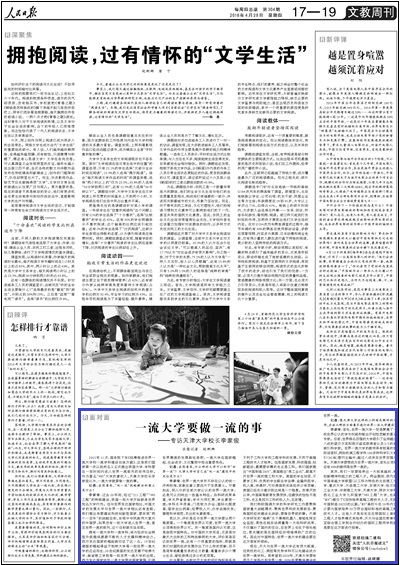 2015年11月,国务院下发《统筹推进世界一流大学和一流学科建设总体方案》,这是我们国家第一次以政府名义正式提出我国大学、学科要在一定时间内进入世界一流前列的宏伟目标。作为著名“985”大学的掌校人,天津大学校长李家俊认为,一流大学就要做一流的事。