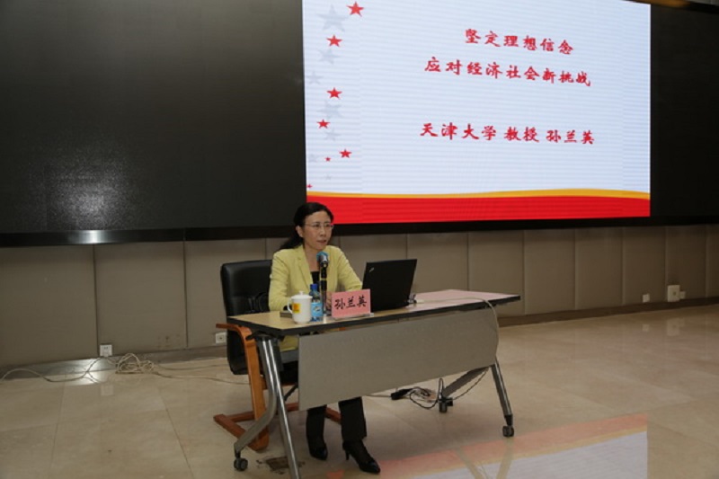 孙兰英从“中国经济社会发展阶段的新变化;‘新常态’下面临的两大挑战;‘十三五’时期的主要目标;做合格共产党员,坚定理想信念是应对风险挑战的关键”四个方面详细阐述了中国经济社会发展阶段性特征,并对习近平总书记系列重要讲话精神进行解读。她指出,这些新理念、新思想、新战略体现了十八大以来以习近平同志为核心的党中央治国理政的理论创新,是对中国特色社会主义理论体系的丰富和发展。学习系列重要讲话,着眼加强理论武装、统一思想行动,进一步增强政治意识、大局意识、核心意识、看齐意识。她强调,“做合格党员”是每个党员入党之后始终面临的重大课题,直接关系到党的创造力、凝聚力和战斗力,应做到坚定理想信念、践行党的宗旨、秉持严实作风。以实绩为检验,把自己从事的工作同实现党的奋斗目标紧密联系起来,努力创造一流的业绩。