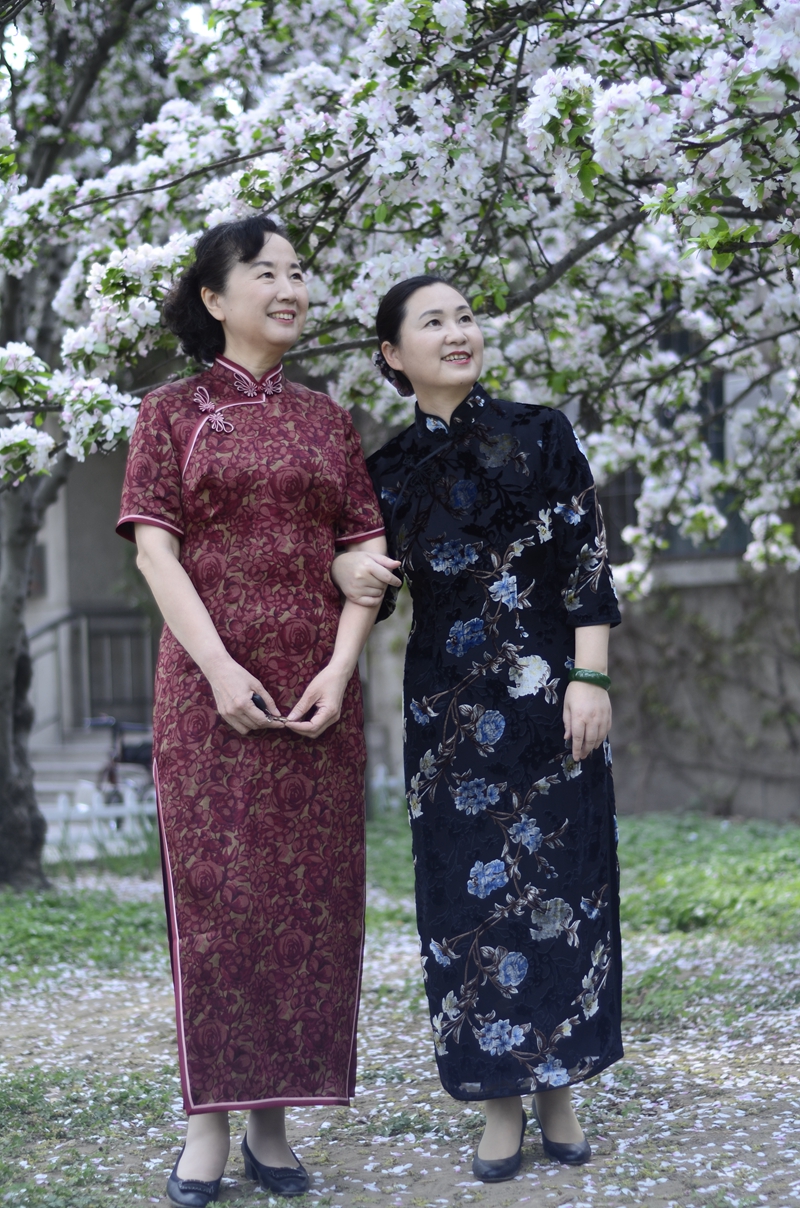 旗袍是稳妥的女子穿的,舒缓闲适,安然静谧。科研上巾帼不让须眉的天大女教授们穿上则尤显高贵和端庄,分外地吸引人。举手投足间,流露出端然与雅致;一颦一笑间,自有一份似水的娇羞。伴随着徐徐微风,海棠花瓣开始飘零,走在路间的她们,头上飘着花瓣,手间抓着花瓣,脚下不经意间踩着花瓣,形成了海棠花下一道最美风景,承载着中华民族五千年的文明辉煌,演绎着炎黄子孙传唱千年的科学梦幻。