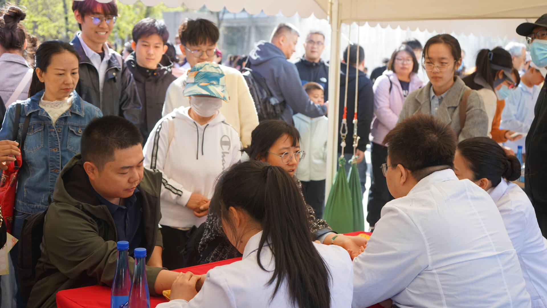 北洋广场上,健康嘉年华活动现场热闹非凡,八大特色摊位有序排列。在“中医四诊及养生保健”摊位前,医学院特意邀请到天津中医药大学的志愿者一道为游客们细致把脉、看舌象,耐心讲解养生知识;海姆立克及心肺复苏演示区,天津市红十字会的志愿者与医学院临床医学专业的学生,一边详细讲解急救要点,一边进行规范的操作演示,吸引众多游客围观学习,大家纷纷上前模拟练习,只为在关键时刻能派上用场,守护生命安全。