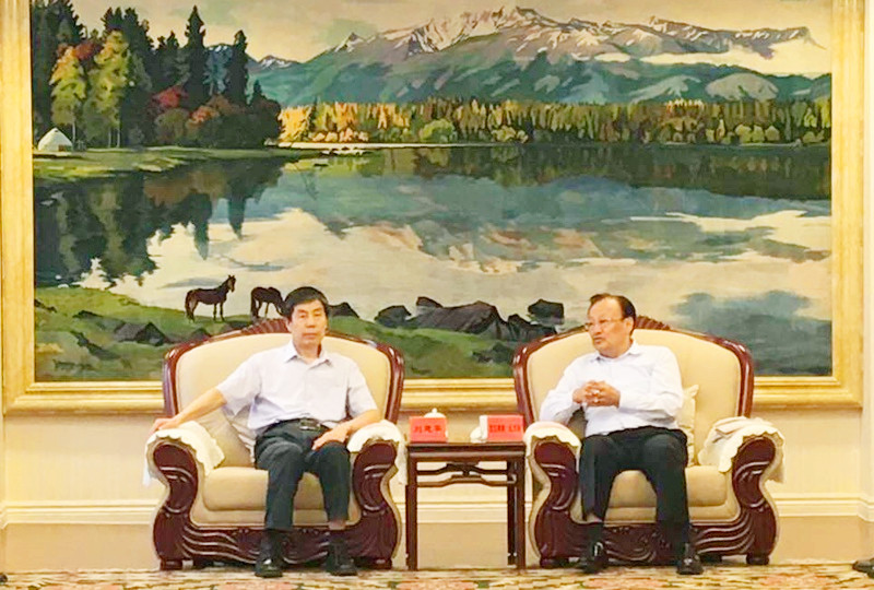 刘建平在会见中表示,天津大学与新疆有着多年的良好合作关系,学校将积极发挥科教资源优势,增强高校自主创新能力,推进政产学研用联合,努力推动与新疆的合作进一步深化,为新疆经济社会发展作出贡献。雪克来提•扎克尔对刘书记的到来表示欢迎。他指出,从上世纪90年代开始,自治区党委开始在天津大学举办新疆经济管理干部培训班,26年来,共举办了37期新疆班,为新疆培训了大量各族各级中青年干部。他代表自治区党委、人民政府向天津大学表示感谢。国家将新疆定位为丝绸之路经济带核心区,希望天津大学发挥自身优势,进一步加强与新疆的各方面合作,积极探索双方创新合作方式,将双方合作水平提高到新高度。在2015年天津大学120周年校庆前夕,雪克来提•扎克尔曾向母校发去贺信,祝贺母校双甲子华诞。在与母校亲人的会谈中,他满怀深情地回忆了多位天大老师及愉快的学习生活。