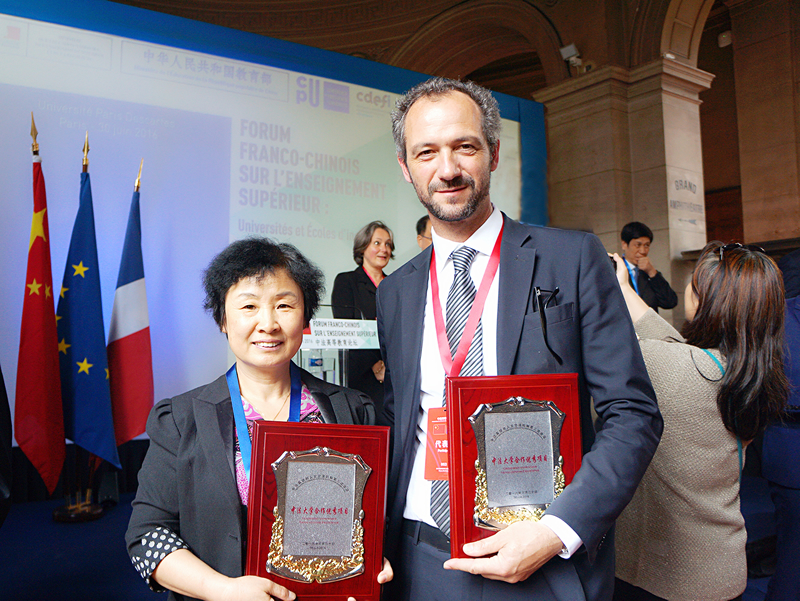 论坛期间,我校与法国波尔多建筑景观学校开展的联合教学项目“景观与领土规划设计”荣获“中法大学合作优秀项目”。冯亚青和法国波尔多建筑景观学校Martin Chenot校长作为获奖单位代表领奖,刘延东及法国政府高级官员为中法双方各11所获奖单位颁奖。本奖项是表彰我校在中法教育合作领域的突出成绩以及在国际范围内的广泛影响。此外,冯亚青与其它与会的中法高校交流了中法合作培养人才的经验和思路。