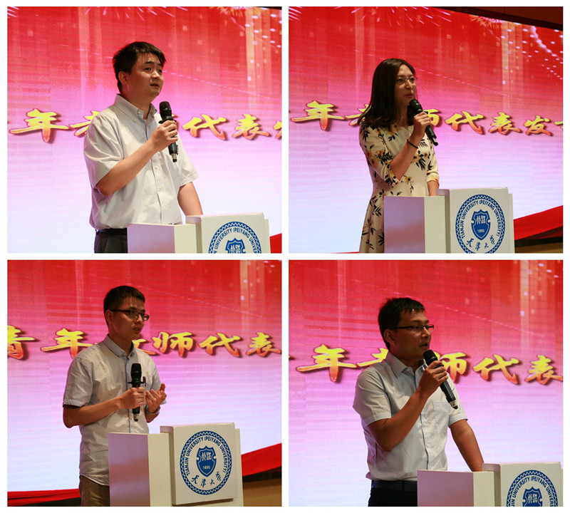 全国杰青获得者、校青年教师联谊会第一届理事会副理事长、化工学院巩金龙和2016年天津大学青年教师教学基本功竞赛一等奖获得者、精仪学院杨佳佳作为青年教师代表发言。巩金龙从进行事业规划(树立长、中、短期目标)、重在执行(权衡轻重缓急,分配好时间和精力;注重平时的学习和积累,化零为整;集中有限的时间,重点突破)、保持学习心态并培养“饿狼”精神、注重团队合作与沟通协调四个方面分享了工作体会和经验与新教师们共勉。杨佳佳汇报了自己提升教学能力的过程和观摩第三届全国高校青年教师教学竞赛的收获和体会。她还从深刻认识教学重要性、注重教学技巧两方面分享了提升教学能力的心得体会。