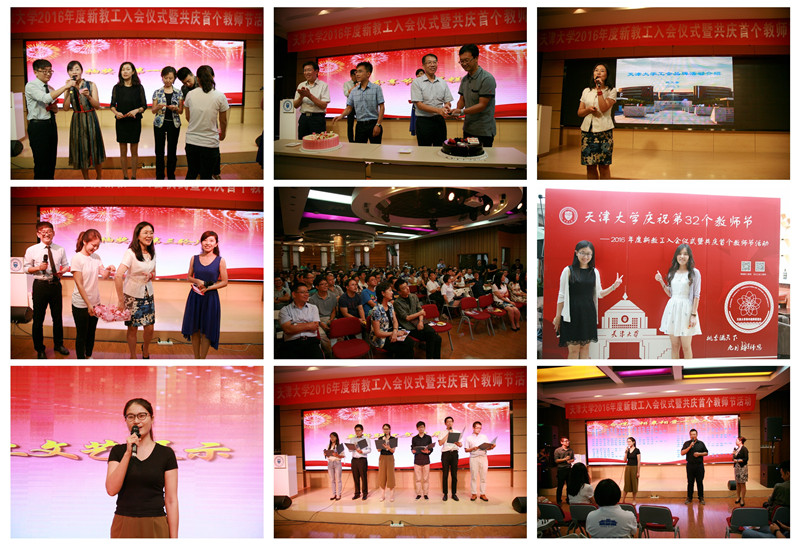 本站讯 (通讯员 程超超)在第32个教师节即将到来之际,天津大学2016年新教工入会仪式暨共庆首个教师节活动在卫津路校区教职工文化活动中心举行。校长李家俊,校党委副书记、纪委书记兼工会主席孙广平及来自党办校办、宣传部、研究生院、科研院、人事处、教务处、国际处、校工会的部门领导出席了活动,2016年度新入职的教职员工近200人参加了活动。