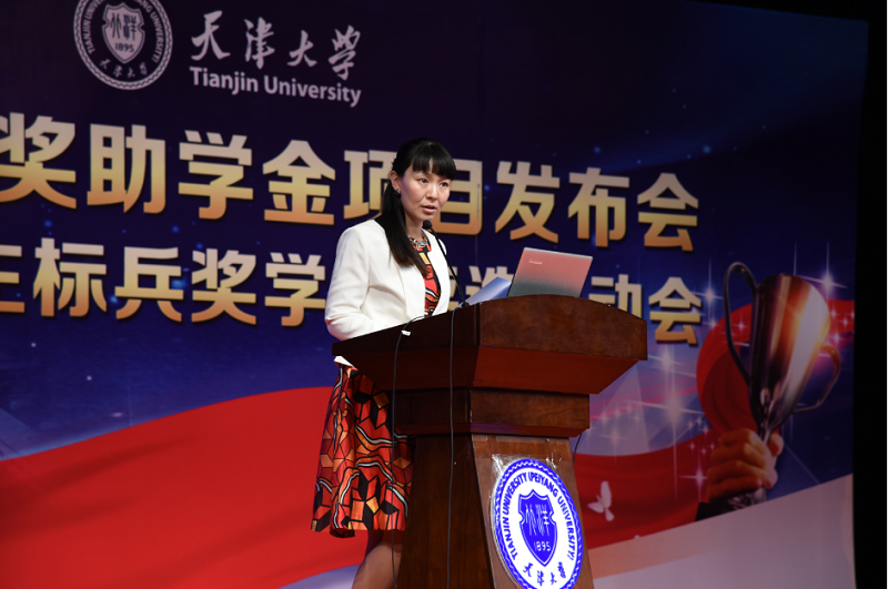 随后,潘晓睿详细介绍了天津大学优秀学生标兵奖学金的设立背景,她指出,优秀学生标兵奖学金为天津大学最高荣誉的在校生奖学金,始设于2008年,由学校领导、校友企业、爱心校友等陆续注资设立。至今已评选出60名品学兼优、素质突出的优秀学生。2016年起,优秀学生标兵奖学金的奖励金额增加至每人每年3万元,同时增设提名奖,每人每年1万元。潘晓睿表示,优秀学生标兵奖学金不仅是校级奖学金中的最高荣誉,更凝聚着学校领导和社会各界对我校学子的殷切期望和广泛赞誉。最后,潘晓睿宣布2015-2016年度天津大学优秀学生标兵奖学金评选启动。