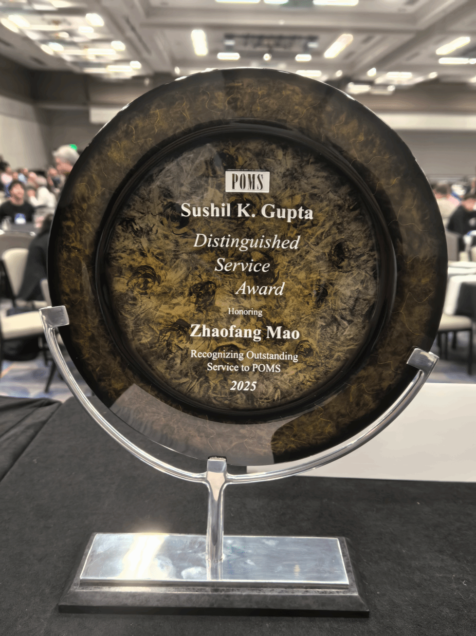 本站讯(通讯员 宇文慧)2025年5月11日,学部党委书记、国际生产与管理学会(POMS)原副主席毛照昉教授在2025年国际生产与管理学会年会上被授予Sushil K. Gupta POMS 杰出服务贡献奖,是该奖项的首位中国高校获奖者。
