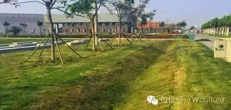 此外,中心岛区域还设计了多种不同形式的下沉式绿地,如自然缓坡式下沉绿地、台地式下沉绿地、高位植台式下沉绿地等,既美观又能渗蓄雨水、减轻地表径流污染。校园内还设有数十条沿路的植草沟,既可对雨洪径流量进行管控,也能初步过滤净化雨水。