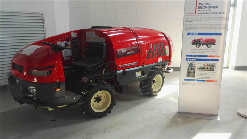 整机设计注重小型化和一体性。采用驾驶员与工作平台分开布置,合理布局内部结构,减小整体体积,扩大农药容积,减少农药对驾驶员伤害。四轮转向设计增强产品通过性和复杂环境适应性。当车辆出现侧倾或行驶到斜坡上就会自动报警,增强整车操作安全性。