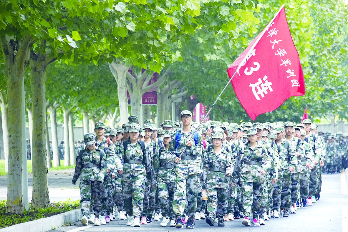 9月5日上午8时30分,以“铭记奋斗历程,担当历史使命”为主题的军训校内长途拉练在天津大学北洋园校区举行。长途拉练是一项艰苦而又考验人的活动,既能磨练同学们的坚强意志,又能锻炼他们的体魄,树立其不怕苦难和团结协作的精神。