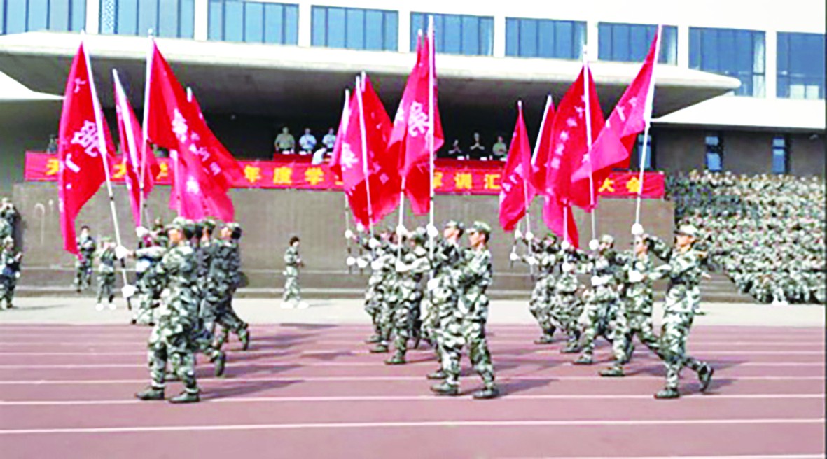 天津大学学工部部长赵欣于卫津路校区宣布了《军训团编制和团营干部任职命令》。两校区先后进行授旗仪式,主席台上的领导嘉宾庄严郑重地将象征连队的连旗交给各连队连长。他们交付的不仅仅是一面面火红的旗帜,更是一份份沉重而光荣的责任。