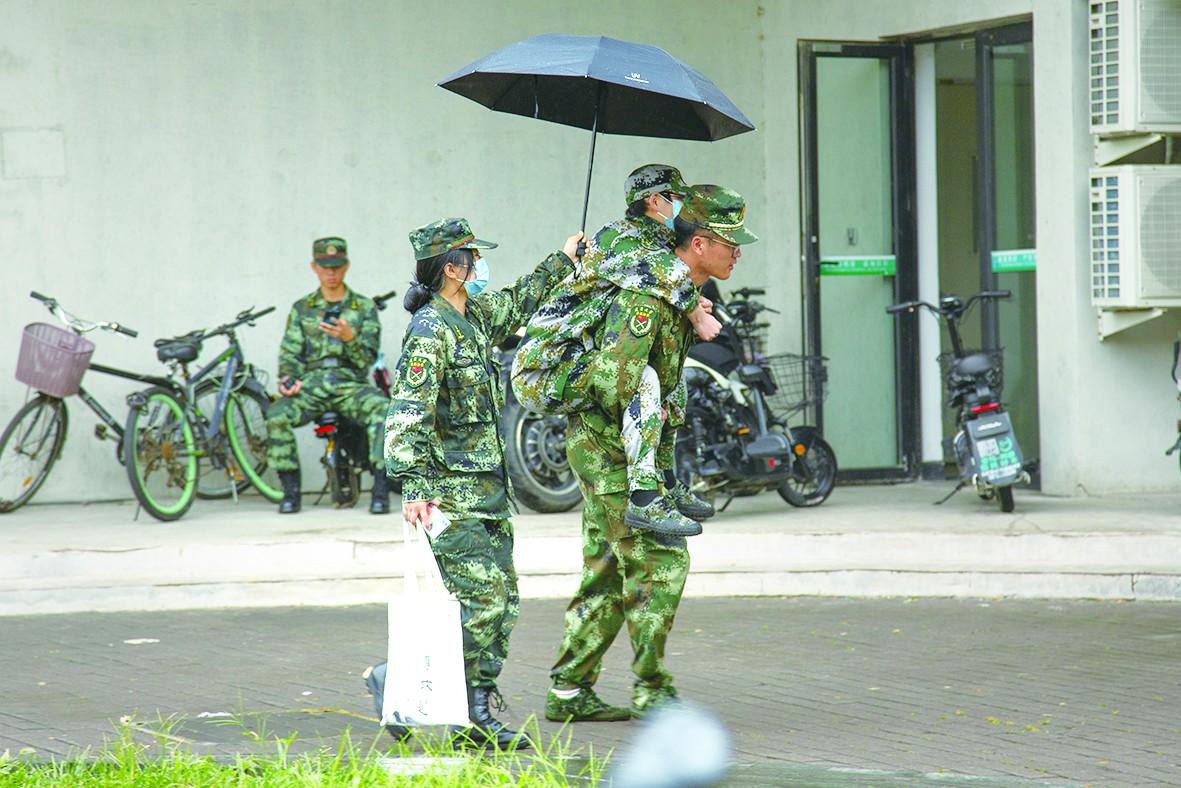 在细雨中奔跑,在烟雾中前行,教官感受到了同学们的坚定意志,更目睹了他们临危不惧的优秀表现。行至太雷广场,同学们在雨中撑起了伞,进行了短暂休息。