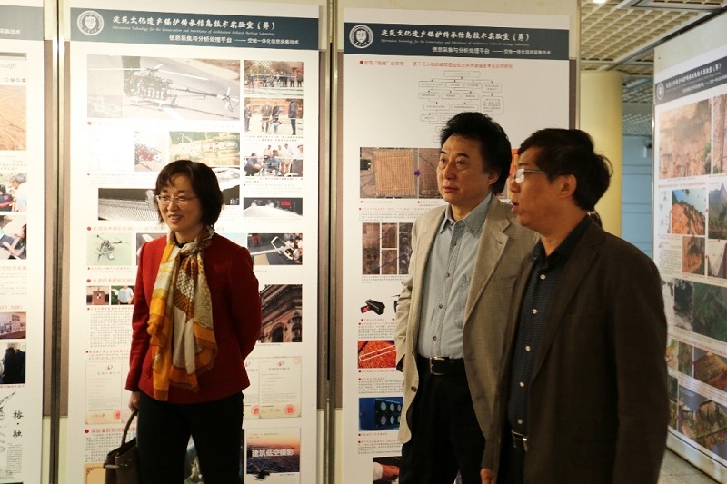 汇报结束后,专家组前往建筑学院二楼展厅参观古建筑测绘和实验室成果展,对文物建筑测绘国家文物局重点科研基地、建筑物理环境与生态技术天津市重点实验室、空-地协同信息技术实验室、数字化设计实验室、虚拟现实实验室、六合建筑工作室等实验场所进行现场考察和询问,查看了文化遗产数据库建设和各类信息技术的应用情况。