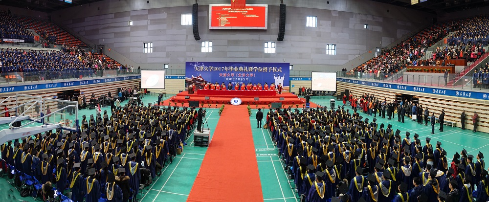 本站讯(记者 赵习钧 摄影 王建泽)1月13日,天津大学2017年第一次研究生毕业典礼暨学位授予仪式在卫津路校区体育馆隆重举行。场馆内外人头攒动,气氛庄重而热烈,天津大学191名博士研究生和2757名硕士研究生满怀喜悦地依次登上主席台,接受师长拨流苏并庄重地接过证书,喜获学位。校领导、校友和教师代表现场为毕业生们送上了殷殷祝福和拳拳嘱托。