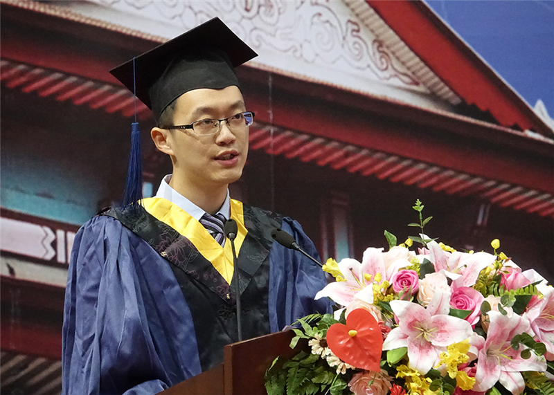 天津市首届“德业双馨”十佳教师、天津大学管理与经济学部教授赵黎明作为导师代表发言。他代表导师全体,向毕业学子和家人表示祝贺,送上祝福:“希望你们要永远保持乐观的生活态度、坦荡的做人胸怀、不倦的敬业精神、高尚的人生追求。面对复杂的环境,能够始终保持清醒的头脑、辨证的眼光和持续发展的创造精神,自觉地实现自我提升、自我优化和自我超越,为中华民族的伟大复兴做出自己的贡献。”