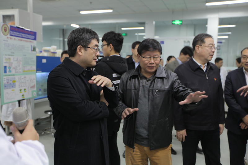 元英进向陈浙闽介绍了研究院的建设背景及已取得的成绩,着重介绍了系统生物工程教育部重点实验室、天津市合成生物技术平台的天然产物人工细胞设计构建、基因元件预测、标准化元件模块库等在国际及国内领先的科研技术成果。王小宁介绍了自天津大学入驻以来,武清区科技水平迅速提升,高端人才聚集,研究院为整个武清区的企业服务,促进企业转型升级。