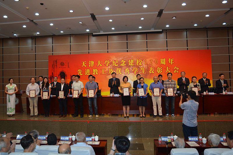2015年9月26日下午2:30,天津大学纪念建校120周年先进教工及优秀学生表彰大会在天南楼C4报告厅隆重召开,共表彰了97名杰出贡献奖获得者,40名青年先锋奖获得者和120名北洋英才奖获得者。这些获奖者,是全校4600多名教职员工和30000多名在校生中推选出来的优秀代表。